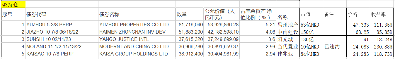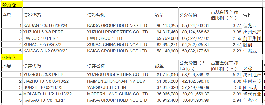 比如Q2持有94,317,460的禹州地产债,Q3减少到81,716,040