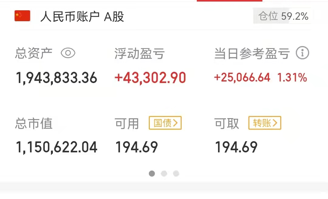 实盘账户目前情况,总资产194万,仓位60%左右。
