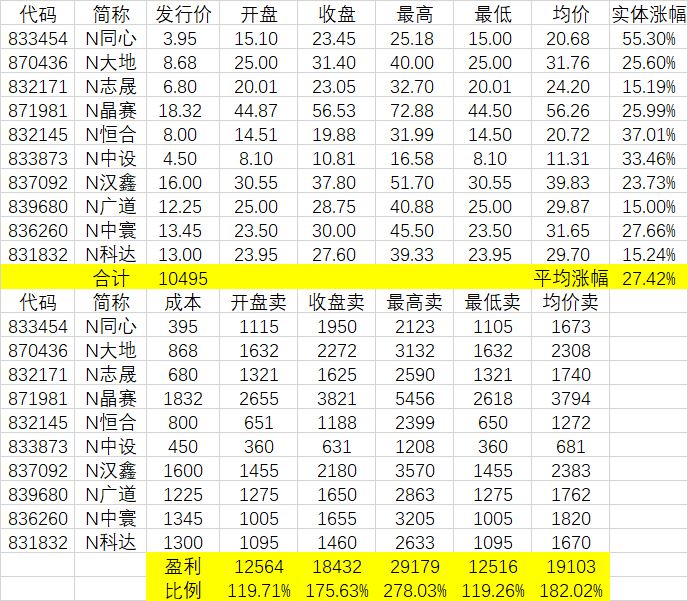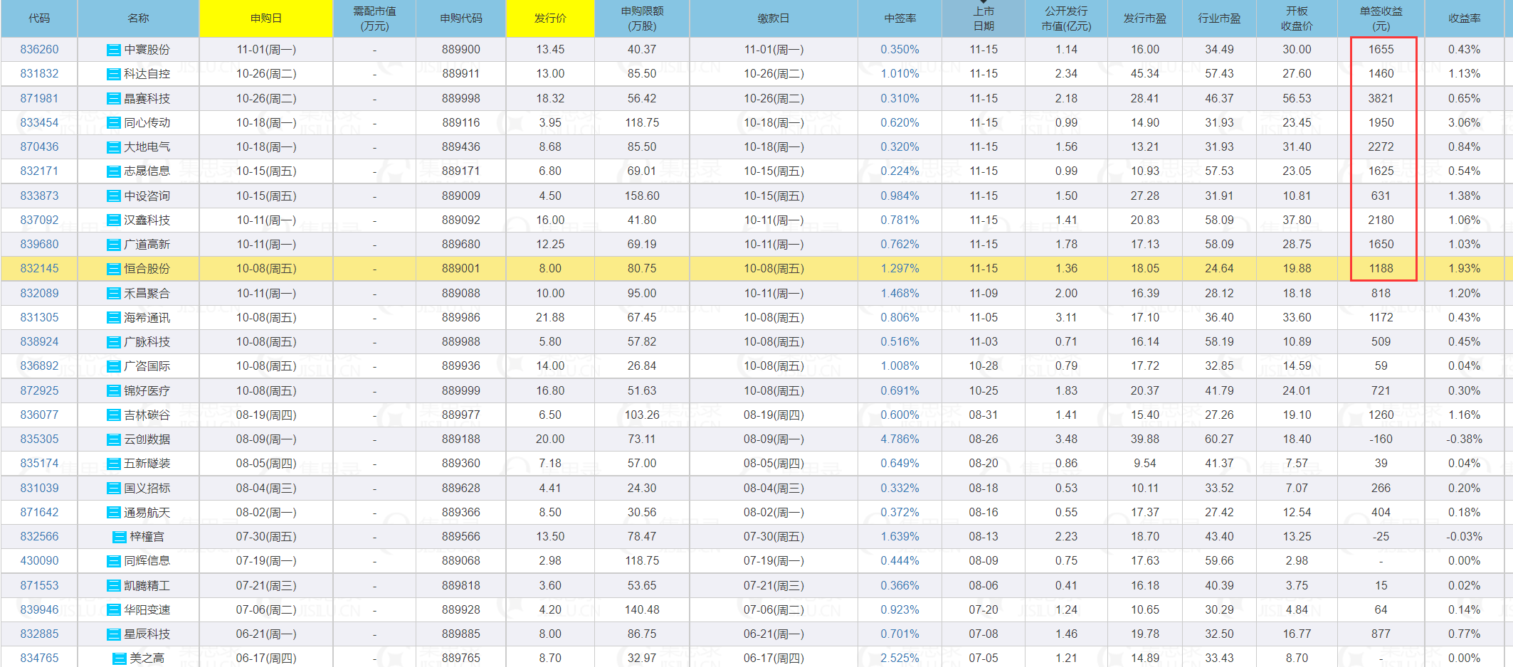 如果每个新股都中一手,近今天上市这10只新股就收益接近2万元