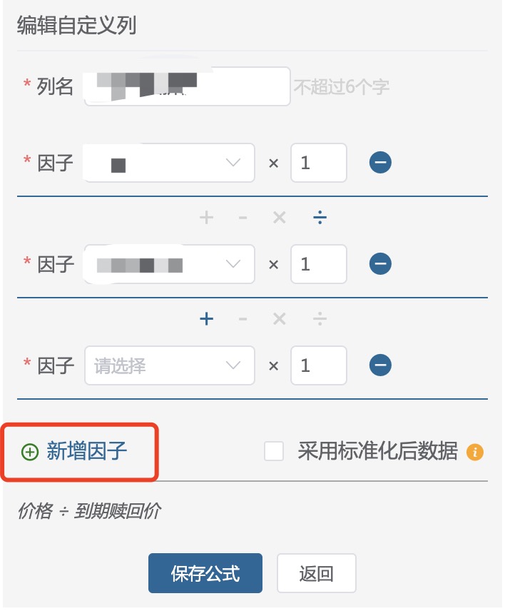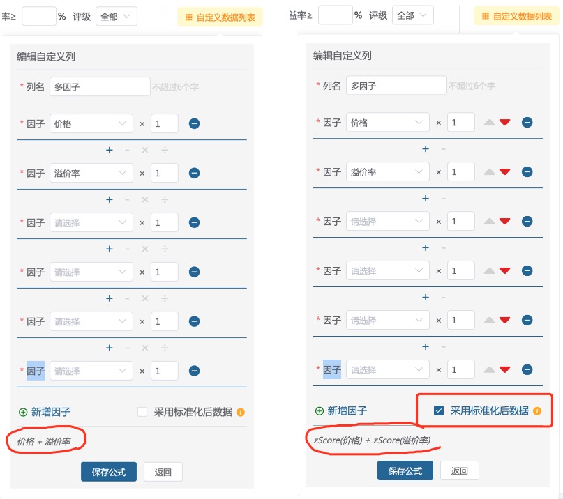 可转债定制版新增“自定义列”的功能,可帮助有需要的朋友形成自己的多因子参数,请试用。入口在可转债定制版的自定义数据列表里,如下图所示: