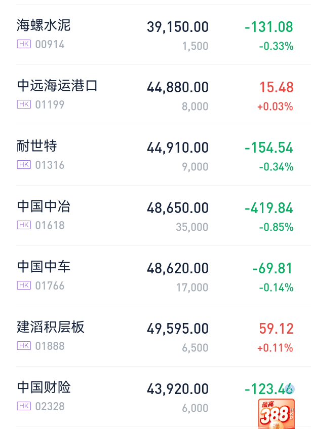 早盘调出江苏宁沪高速,万洲国际,中国海洋石油,华能国际电力,国药控股。调入昆仑能源,中国外运,中国中冶,中国中车,中国重汽港股交易费太贵了,我现在转向盈富基金和南方恒指2倍了,用华泰香港包年,几乎无费用,但技术很菜,今年亏了20%