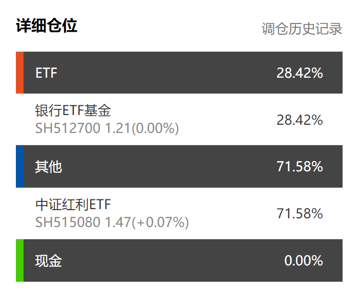**红利拿了好几个月,相对跌幅小,计划调部分仓位,摊个小饼饼,做两手准备。