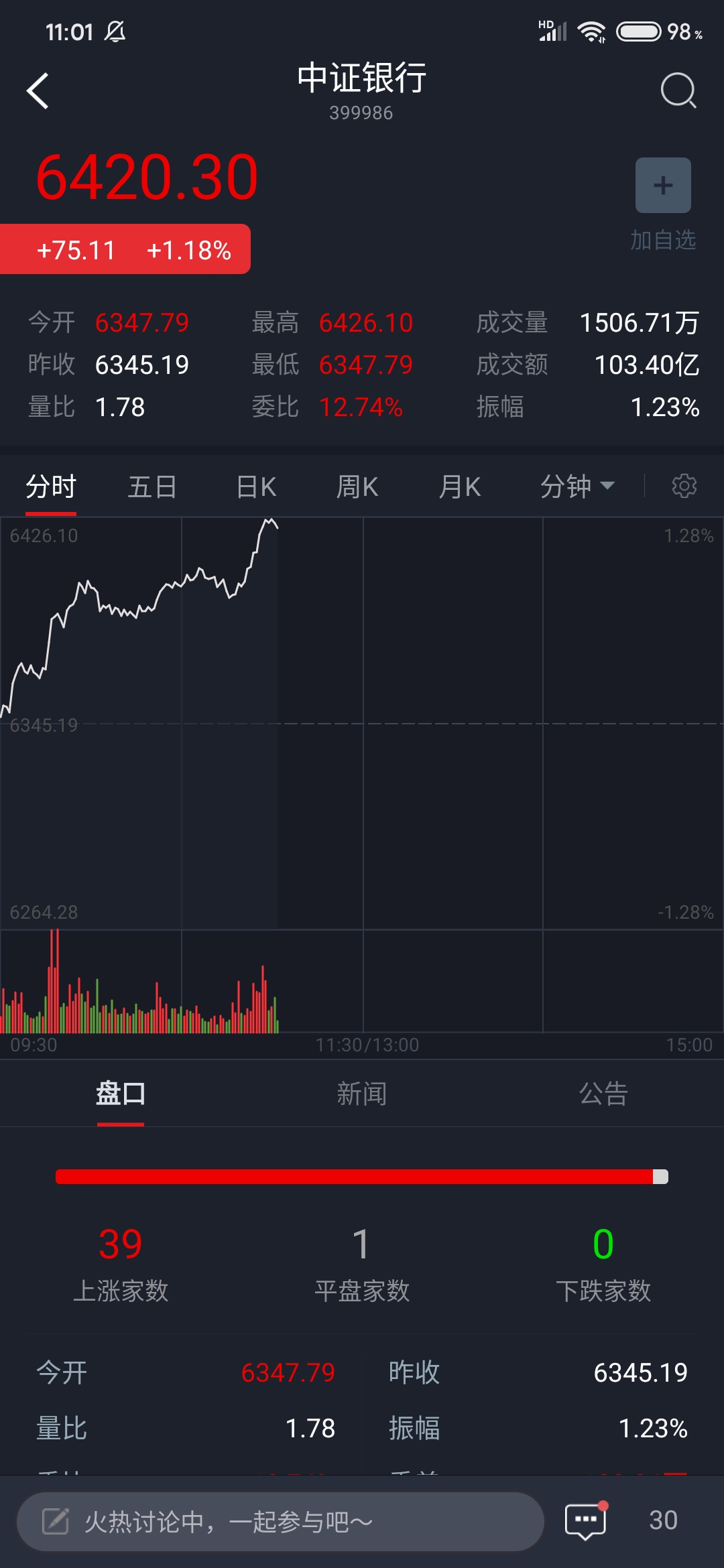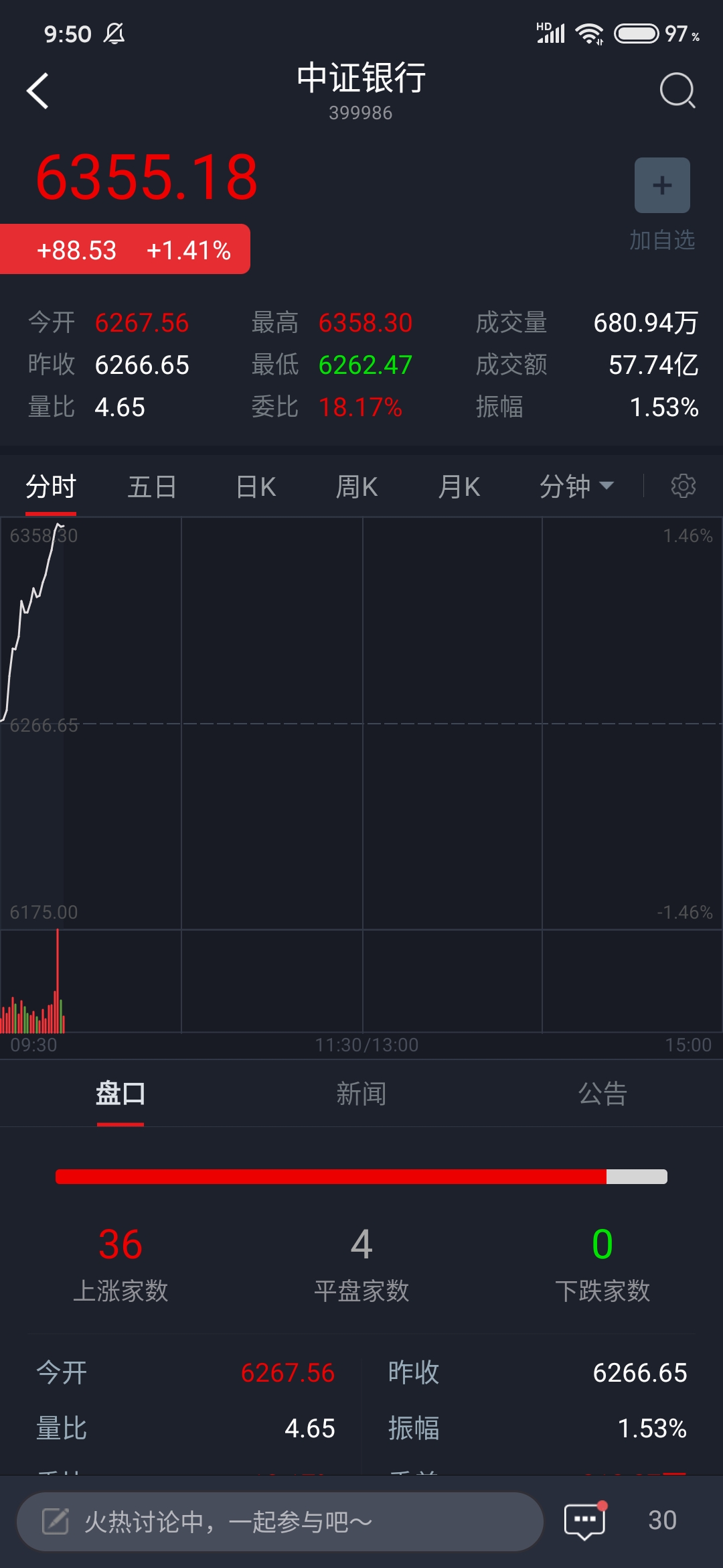 我太喜欢银行暴动了,主要不是因为银行涨了,而是因为其他的跌了