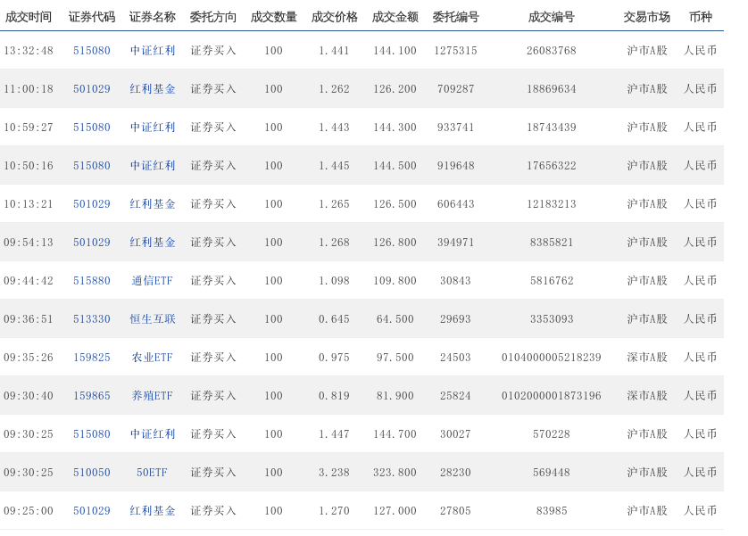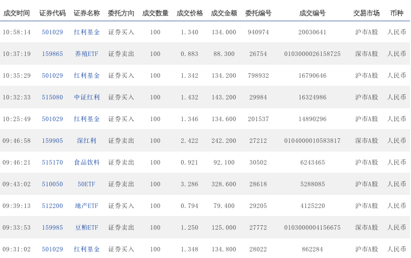 10:04:11 515080 中证红利 证券买入 100 1.394 139.4 247553