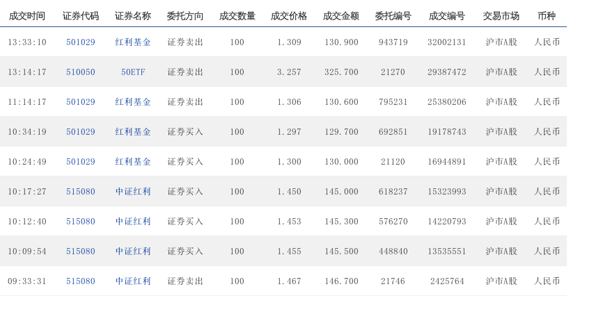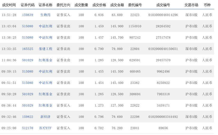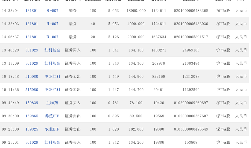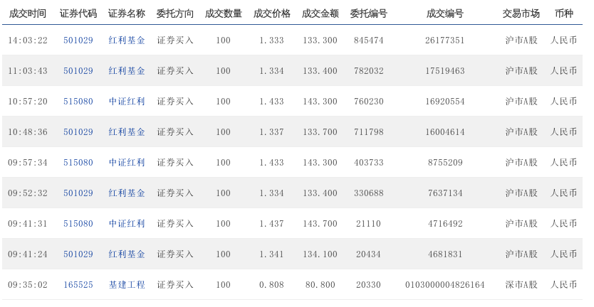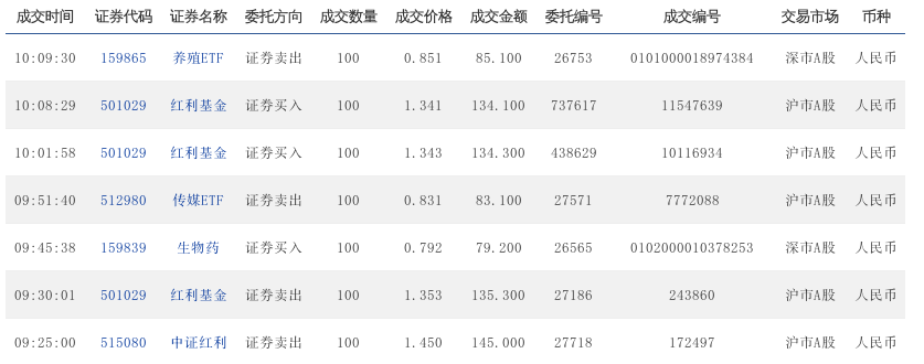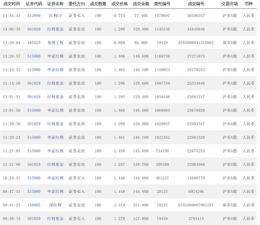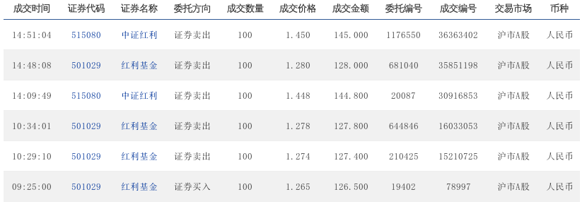 09:47:16 501029 红利基金 证券卖出 100 1.364 136.400 234938 6563096 沪市A股 人民币