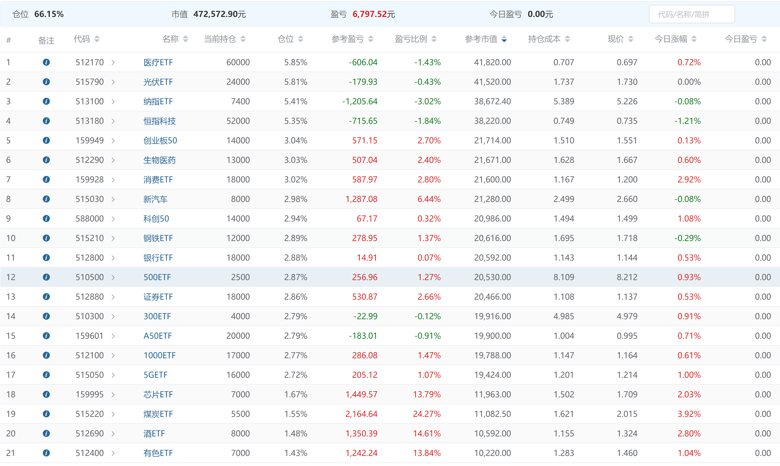 220128持仓盈亏-3580.99 当日参考盈亏-219.12今天买入了26000元共21笔。慢慢买吧。现在刚半仓。