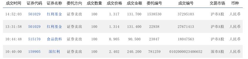 9:41:22 501029 红利基金 证券卖出 100 1.373 137.3