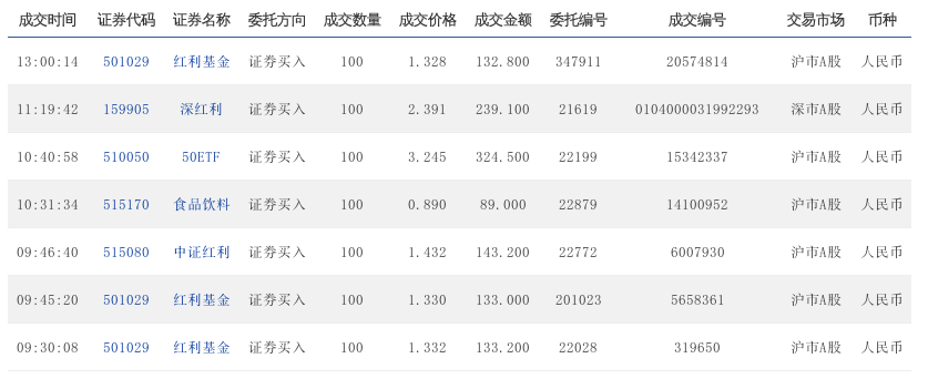 9:43:29 501029 红利基金 证券买入 100 1.298 129.8 200418