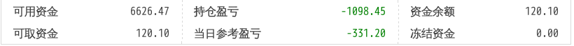 220121持仓盈亏-1289.00 当日参考盈亏-410.19 电脑出问题了,没有操作。下个交易日再买或许有更好的结果。