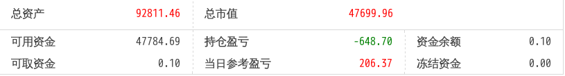 可取资金0.10 当日参考盈亏94.67 冻结资金0.00