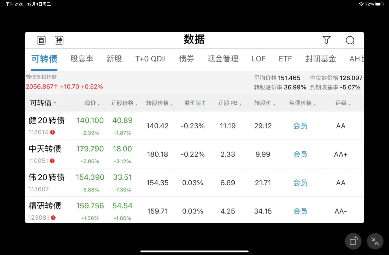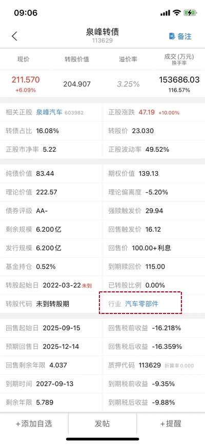 (2)可转债增加了行业,随正股所在的行业确认,并可点击查看该行业下的所有在市场转债。