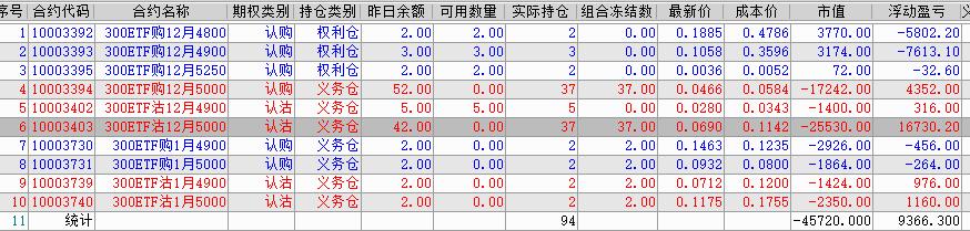 11月24日建仓后,是牛3腿,绝对的多头,但马上连跌了4天,输了1万多,由于怕连续跌,触发调仓机制所以变成偏多双卖。到现在300ETF突破走势,明明大胜的牌面结果~~~