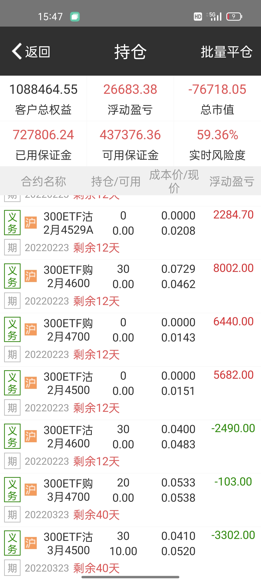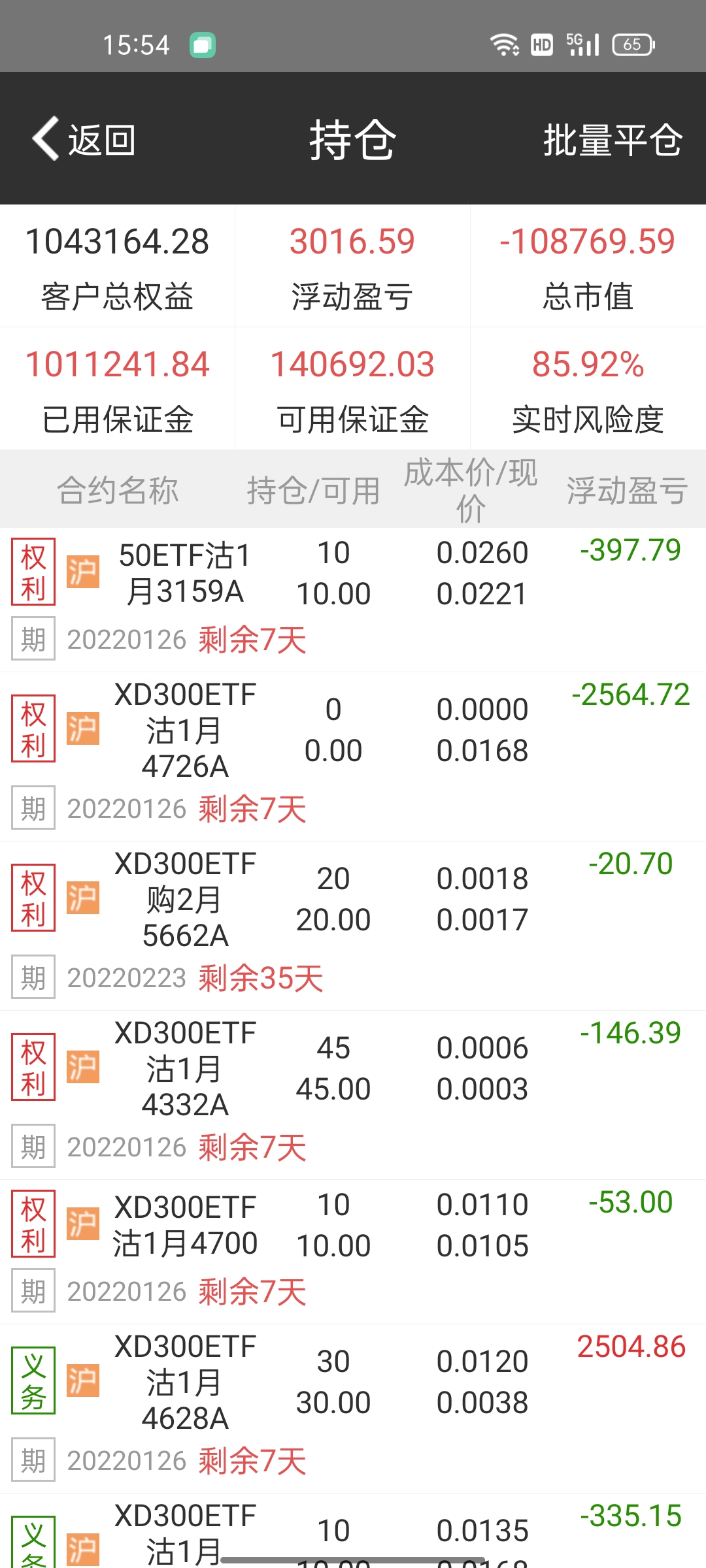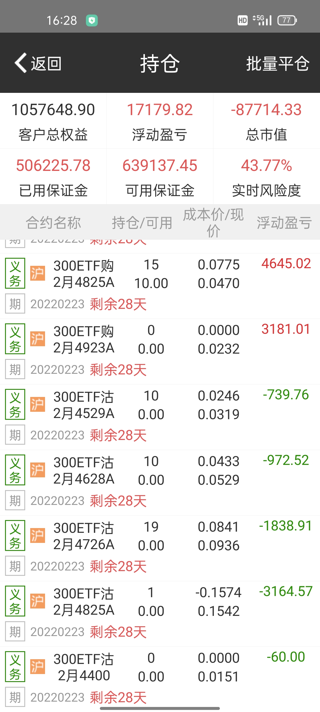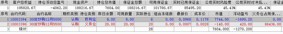 沽波动率都到快40了根本没见过,输的最狠那天,保证金不够了,补了7万保证金,这7万只用了2分钟又不够了,没看错,就2分钟。
