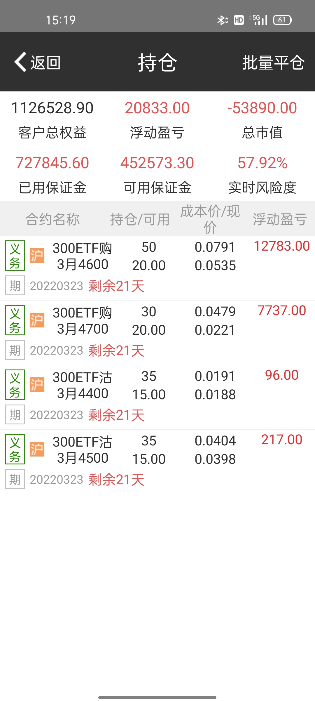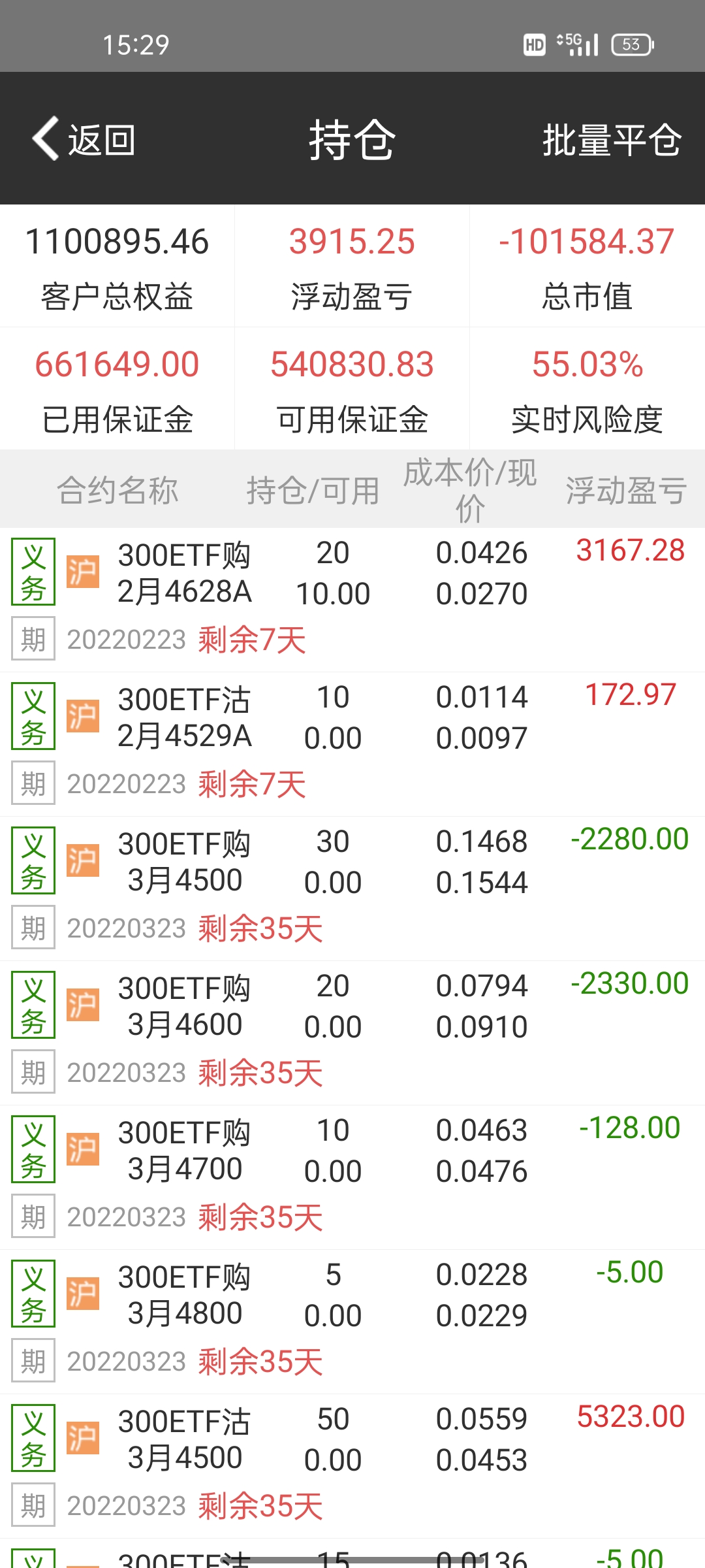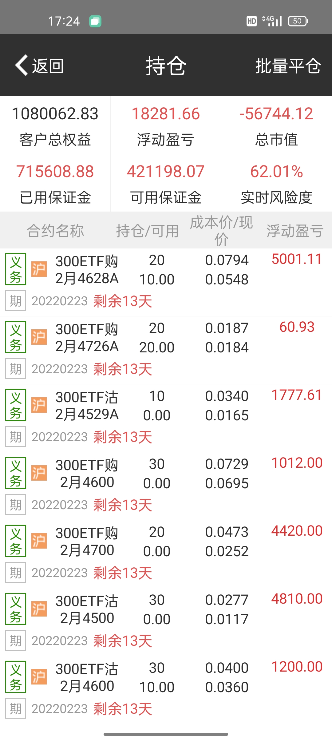 沽波动率都到快40了根本没见过,输的最狠那天,保证金不够了,补了7万保证金,这7万只用了2分钟又不够了,没看错,就2分钟。