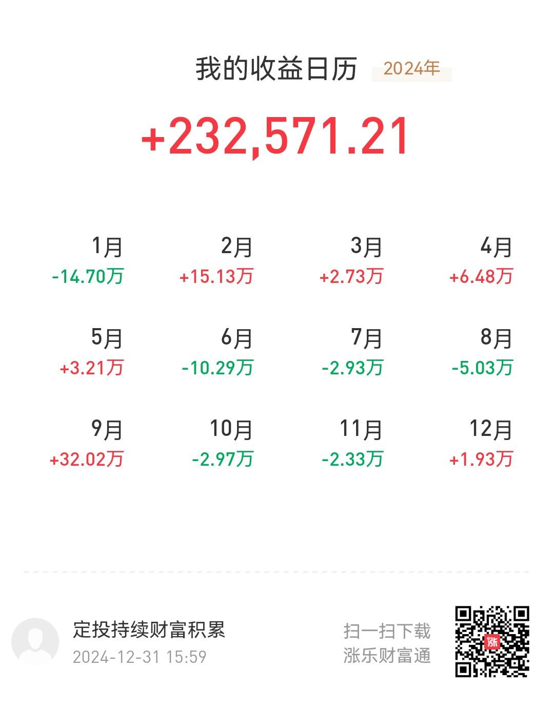 全年满仓抗下来了,一年中两次操作不对,9月底的暴力拉升早早卸杠杆+10月8日看到转债机会没有出手, 按心境来说也不算操作不对:1;自己的能力在那里—不足 ! 2;起贪欲了(可转债不能杠杆,沪深300ETF可杠杆可做T)