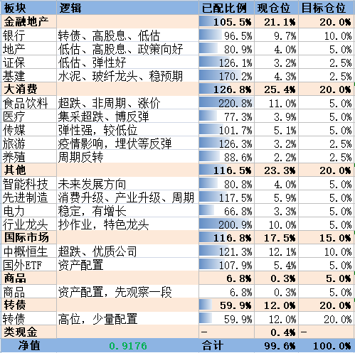ok,这一方案基本先这样吧,仓位慢慢调,或许调仓过程中有些逻辑会变,再边调整边思考吧,反正手里还有不少现金