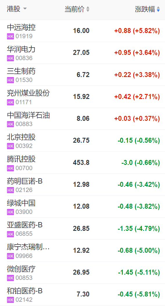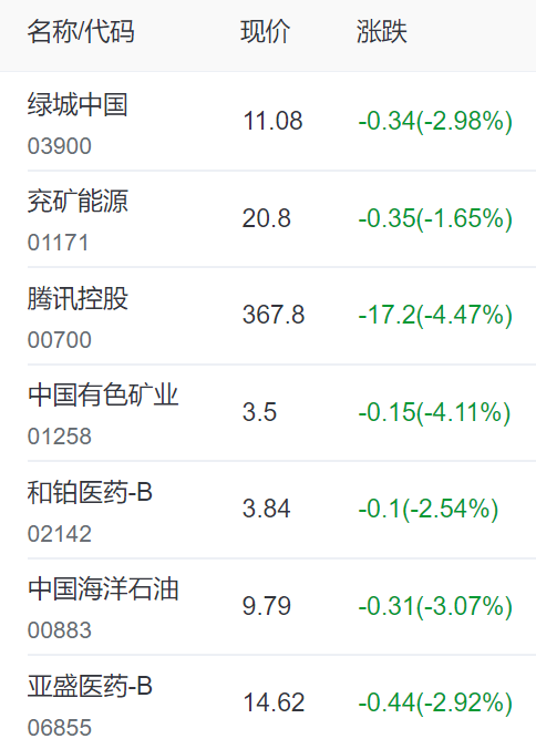 H股持仓按市值排序和当天跌幅,其中,和铂、亚盛年内已经腰斩