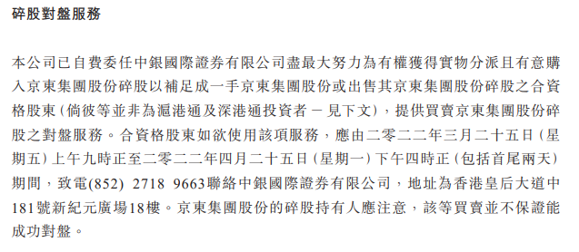 于2021年12月23日,董事会决议将按合资格股东持有每 21股股份获发1股京东集团A类普通股的基准,向于记录日期名列公司股东名册上的股东按彼等当时各自于公司的持股比例。