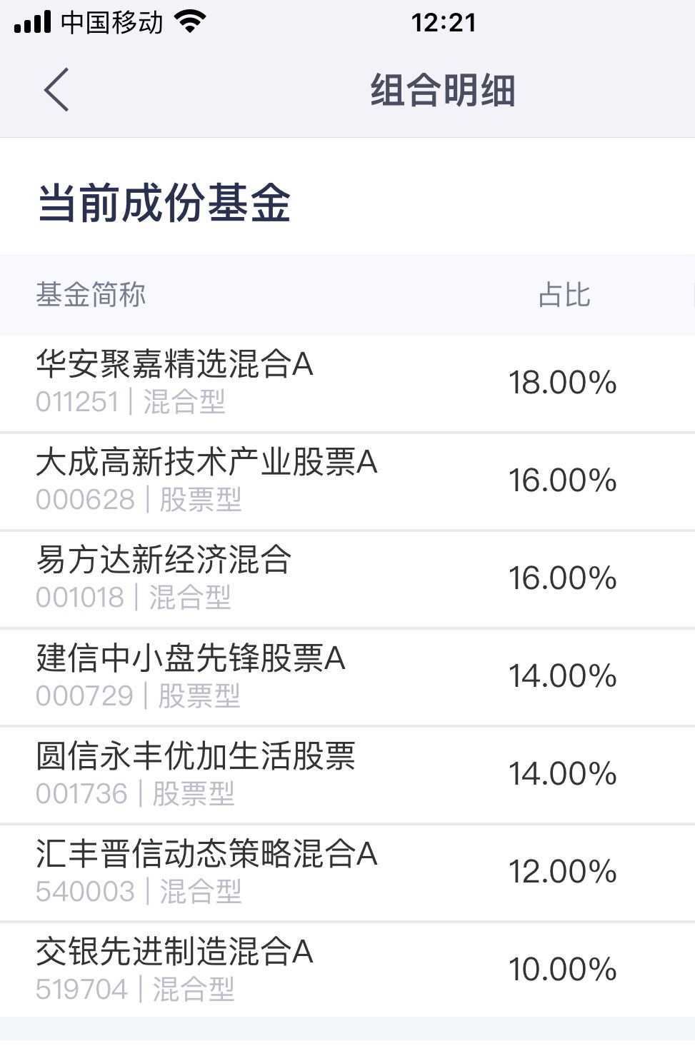 感觉影儿对基金的认知还停留在19年20年抱团股爆发的日子里。个人认为这个组合问题很大,要吗是管理几百亿规模的老牌明星经理,要吗是连一个小的牛熊周期都没经历过的新秀经理,再配些前两年业绩爆发的中生代当红炸子鸡………说不好听点这组合简直是老弱病残一应俱全。规模是业绩的敌人这是基金界共识、一两年管理经验的晨星都判断不出他是靠能力还是运气、那些业绩爆发的买后大概率陷入萎靡期……说句实在话:你这个组合简直就是为了填坑而专门设计的。认知达不到是根本原因,可怕的是你不知道自己的认知达不到。基金赔钱时你拿比特币说事,比特币赔钱时你拿房产说事,都陪钱时你保持沉默……当然这个组合也有两个优点,第一大级别的全面牛来临后应该也能取得不错的收益。第二、大部分时候和天天基金那些富婆组合一样是我们的避坑指南。
