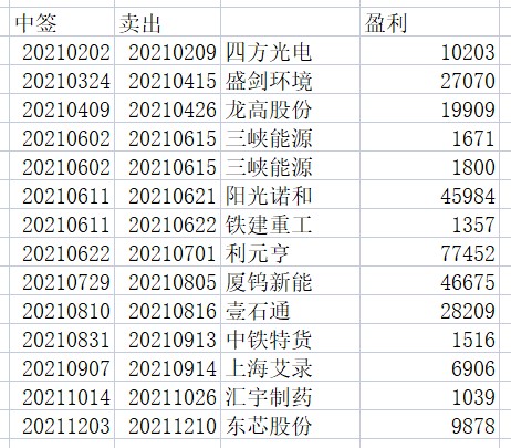 中了14签新股,有5签新股都只赚了一千多元,5签加在一起还不如其他新股一签赚得多,又有3签新股赚了17万,这3签加起来占新股总收益的一半还多,新股赚钱全看能不能中到大肉签,今年单签收益超十万的新股有8个,分别是普冉股份,力量钻石,雷电微力,义翘神州,东鹏饮料,皓元医药,极米科技,中望软件,我一个也没中到,能中到这些的都是天选之子,年末新股断断续续的破发,没破发的收益也不如以前高了,新股收益估计明年会大幅缩水