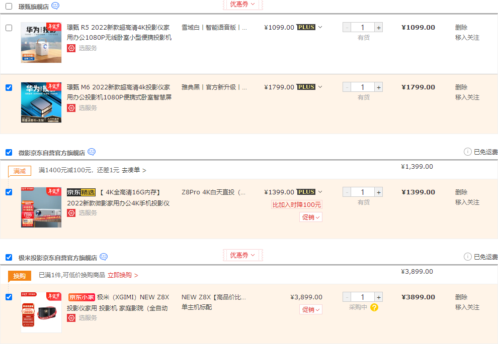华为(璟甄M6,是华为吗?),好像物理指标最差,只有标准分辨率1080P(号称真实物理分辨率),其他指标都一般般,最大有点好像系统内置了央视和卫视节目,不用另装电视家。价格也不贵,优惠后不到1500,还有一个低版本R5大概只有不到800。