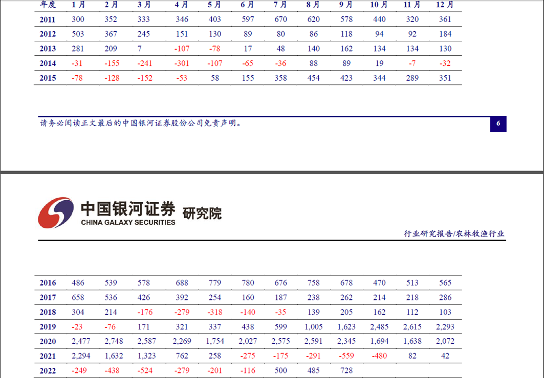 可以看看下图,银河最近研报里11-22年自繁自养的行业头均利润。