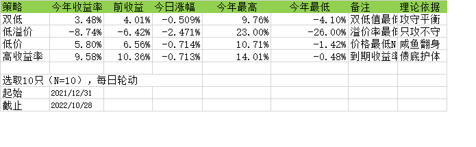 今年算是深入的学习了低溢价策略,但性格关系,完全没有实盘上过,自己下的结论就是不匹配。