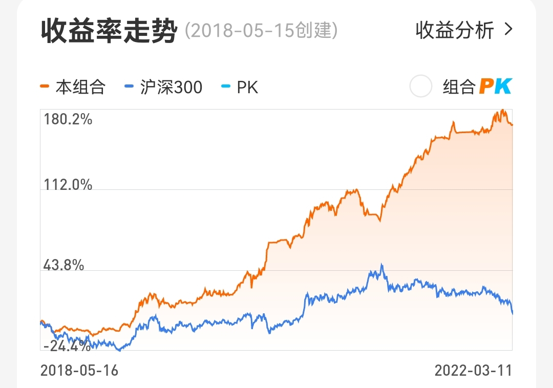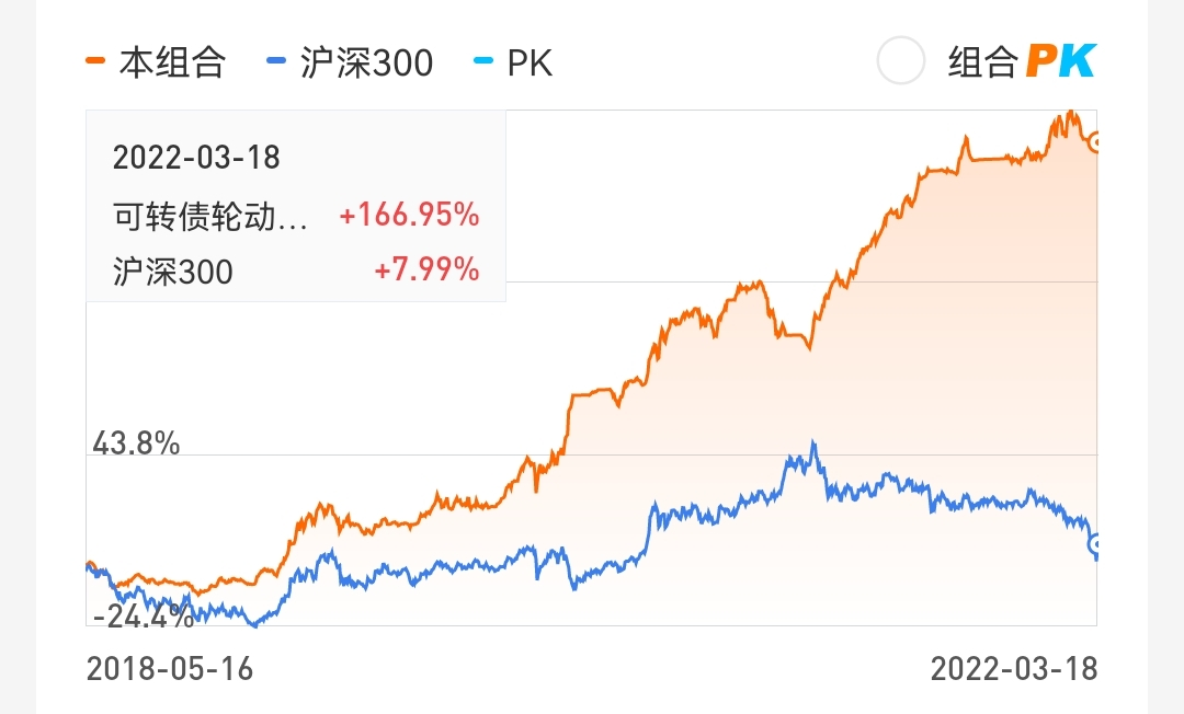 今年沪深300净值0.8689,组合1.0176,领先+14.87%。