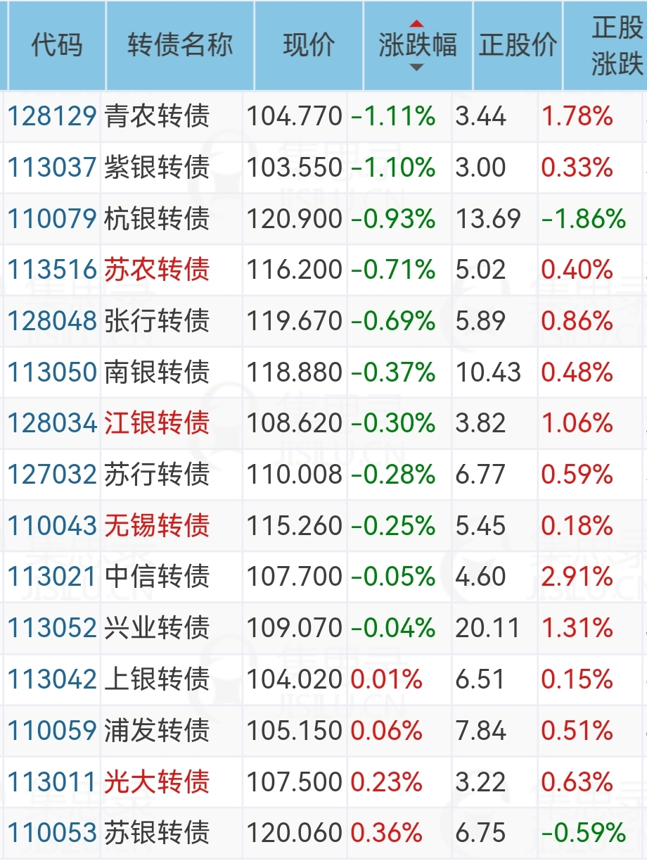 15%排位 第57名 双低值136.08 日下跌-0.24