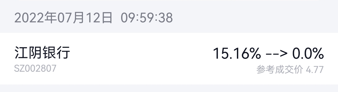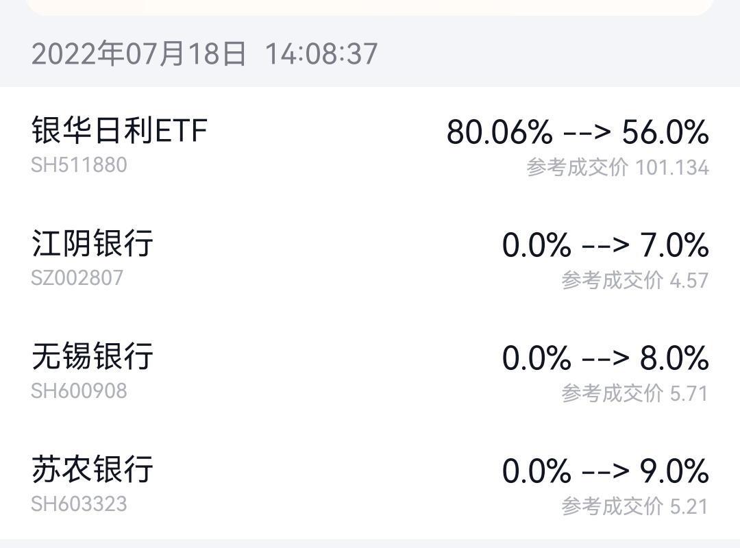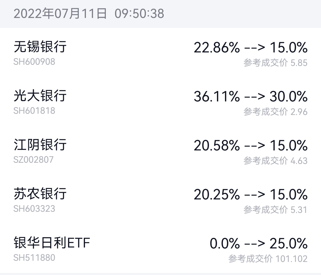 今天操作:4.77元清仓江阴银行和5.46元清仓苏农银行。