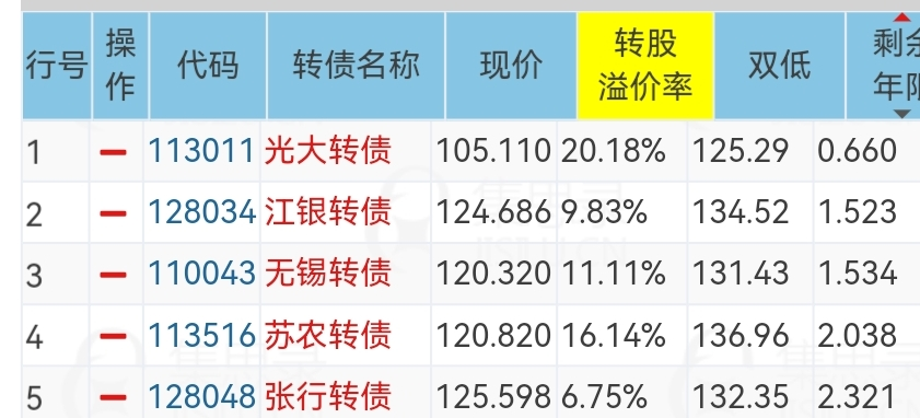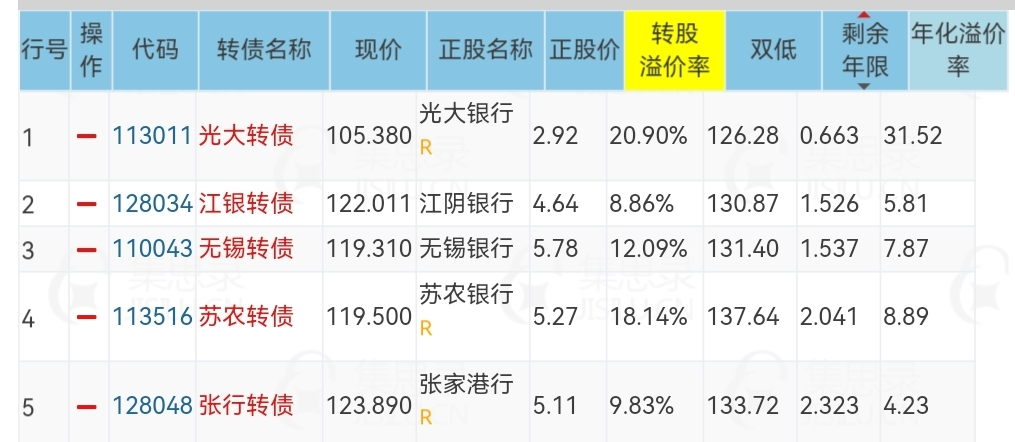 年化溢价率小于5%,双低值+0.5浮点。