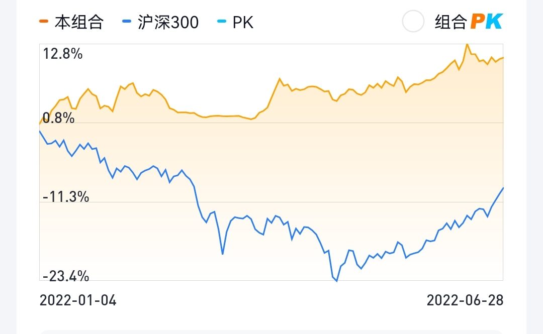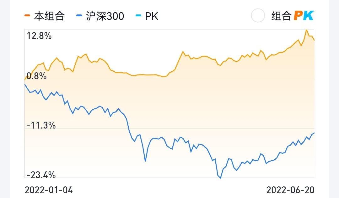 沪深300本年净值0.8603,组合净值1.1128,超额领先25.25%。