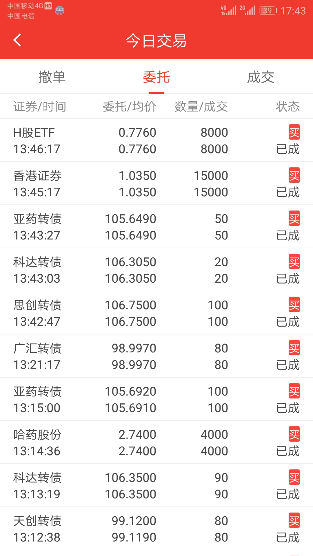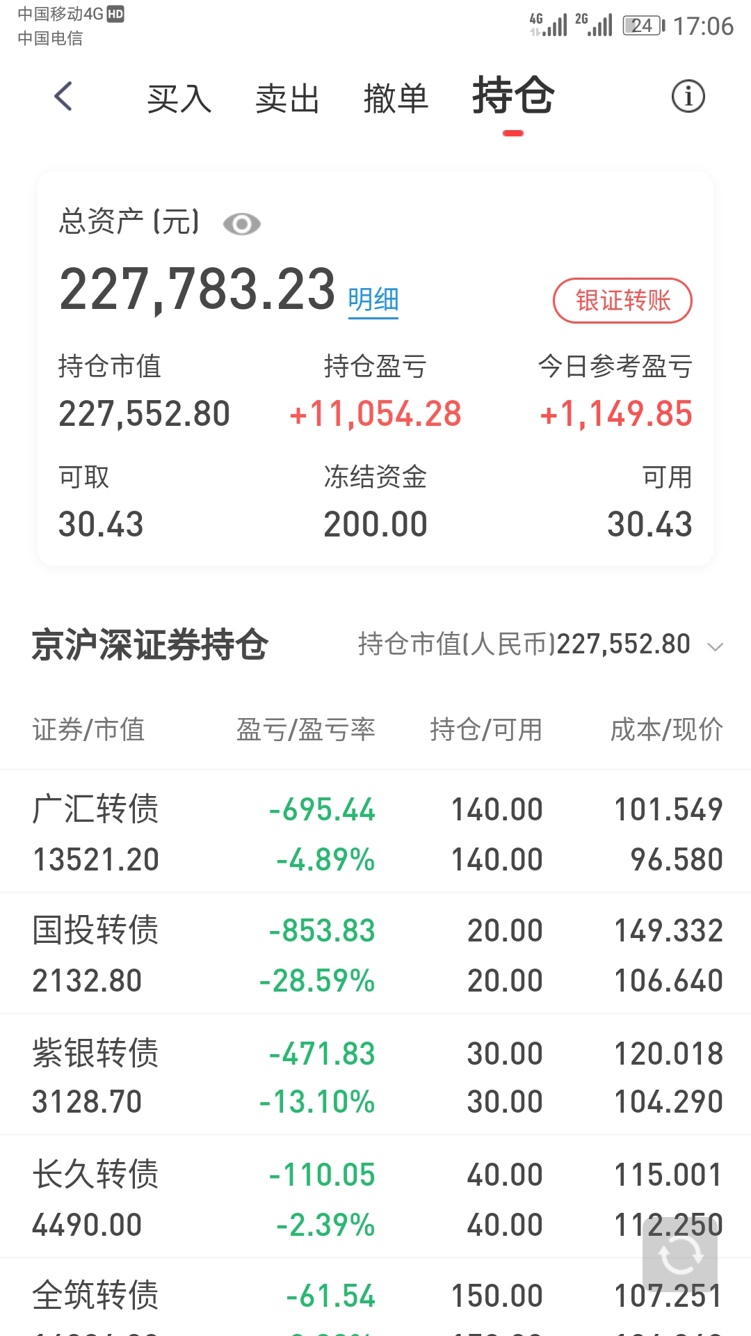 今日操作上:卖出赣粤高速,以后也不再买入,买入光大;卖出山东出版换入凤凰传媒;卖出唐山港,买入全筑转债,另外也卖出200张鹏华前海,等待市场砸坑。