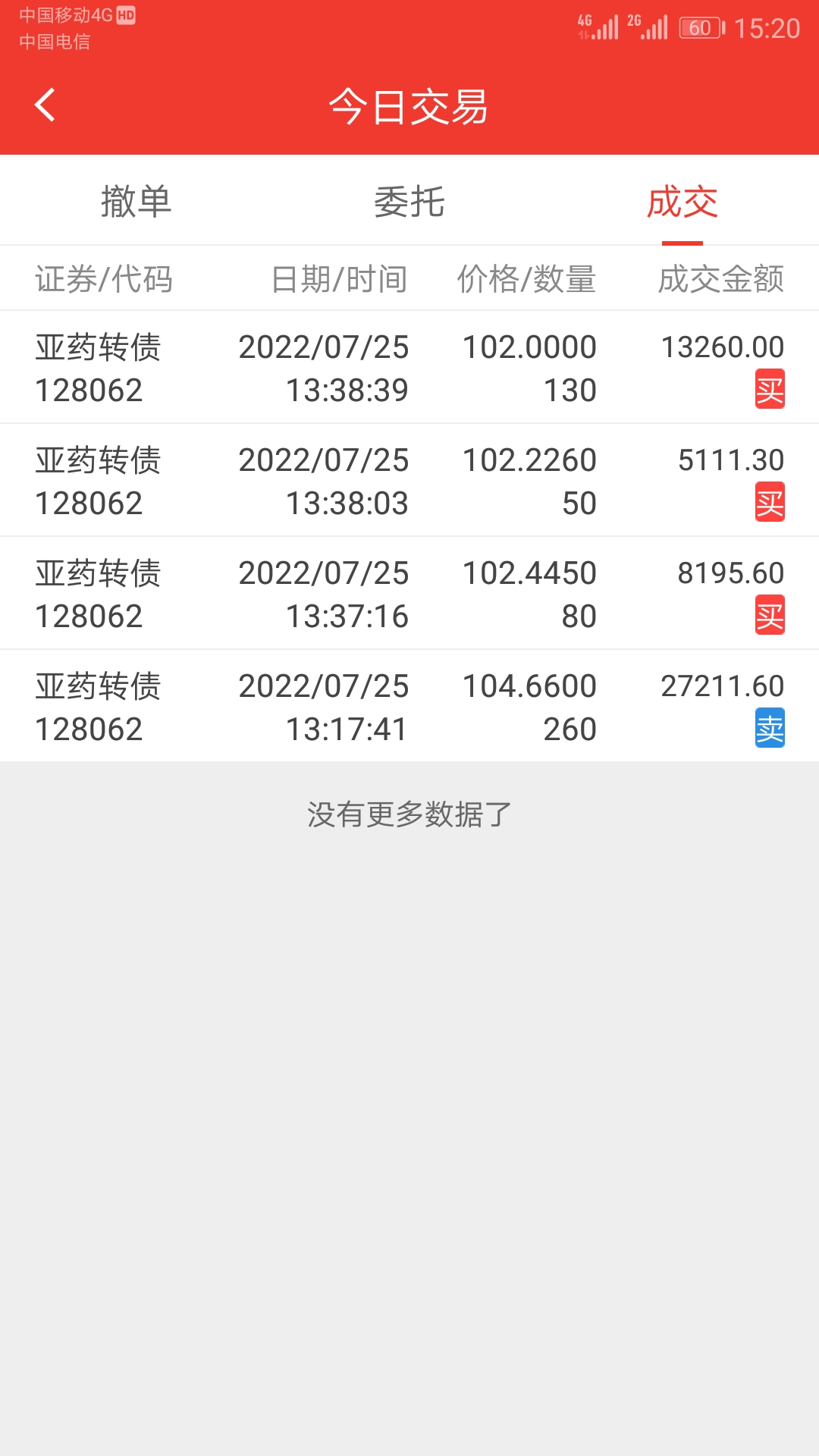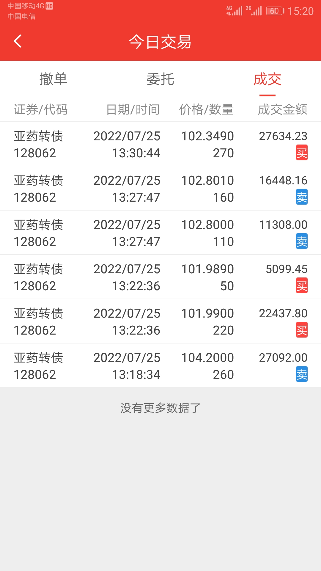 思创暂时毕业了,780张,平均卖价111.3,助推本周取得正收益的概率大增,后续等回调走平后买入。