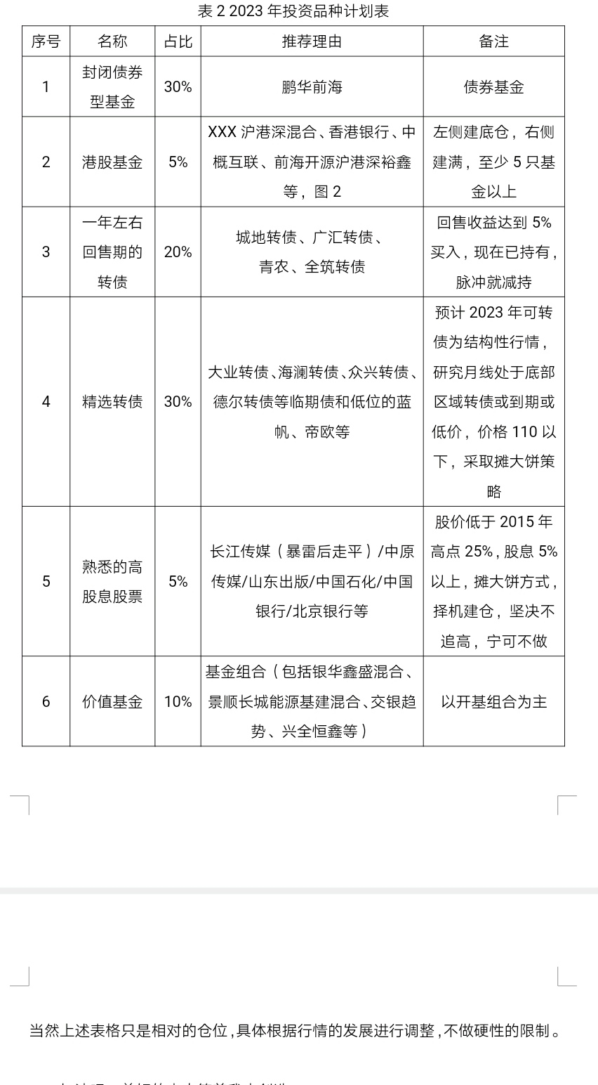本周错误的判断了形势,认为疫情放开后的市场大势是乐观的,于是赎回了全部同业存单,大幅加仓转债和鹏华前海,但是大多都是周一到周三进行加仓的,基本上抄在了一个小高点,尤其是紫银、重银、青农、国投、瑞达等银行证券类等,此外还是摊了一些小饼,成本相比现在高约1%,幸好重仓的思创抓住了一个8%的脉冲,不然这周亏损更加严重,买入的鹏华前海基本上保持相同的跌幅,目前基本满仓。下一步打算是先把年底资金紧张的这个阶段熬过去,希望能守住今年的正收益。
