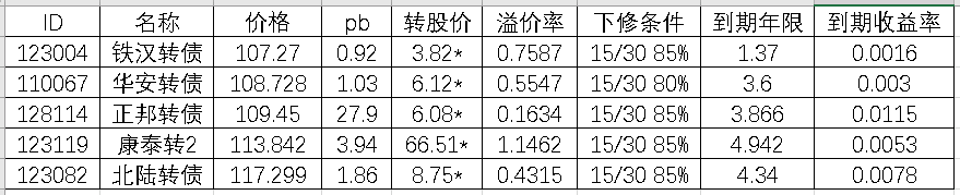空闲仓位太多,周末在思考持熊市思维的投资机会,对于可转债应该是博弈下修机会。于是,把价格合适、曾经下修过的转债筛选出来,详见下表。想着,曾经下修过的转债,其公司应当更加期望不还钱,后续时机合适想必再次推动下修。计划分散买入,慢慢加仓,也算是增加仓位的一种策略。慢、慢、慢,更好的价格才更有吸引力!
