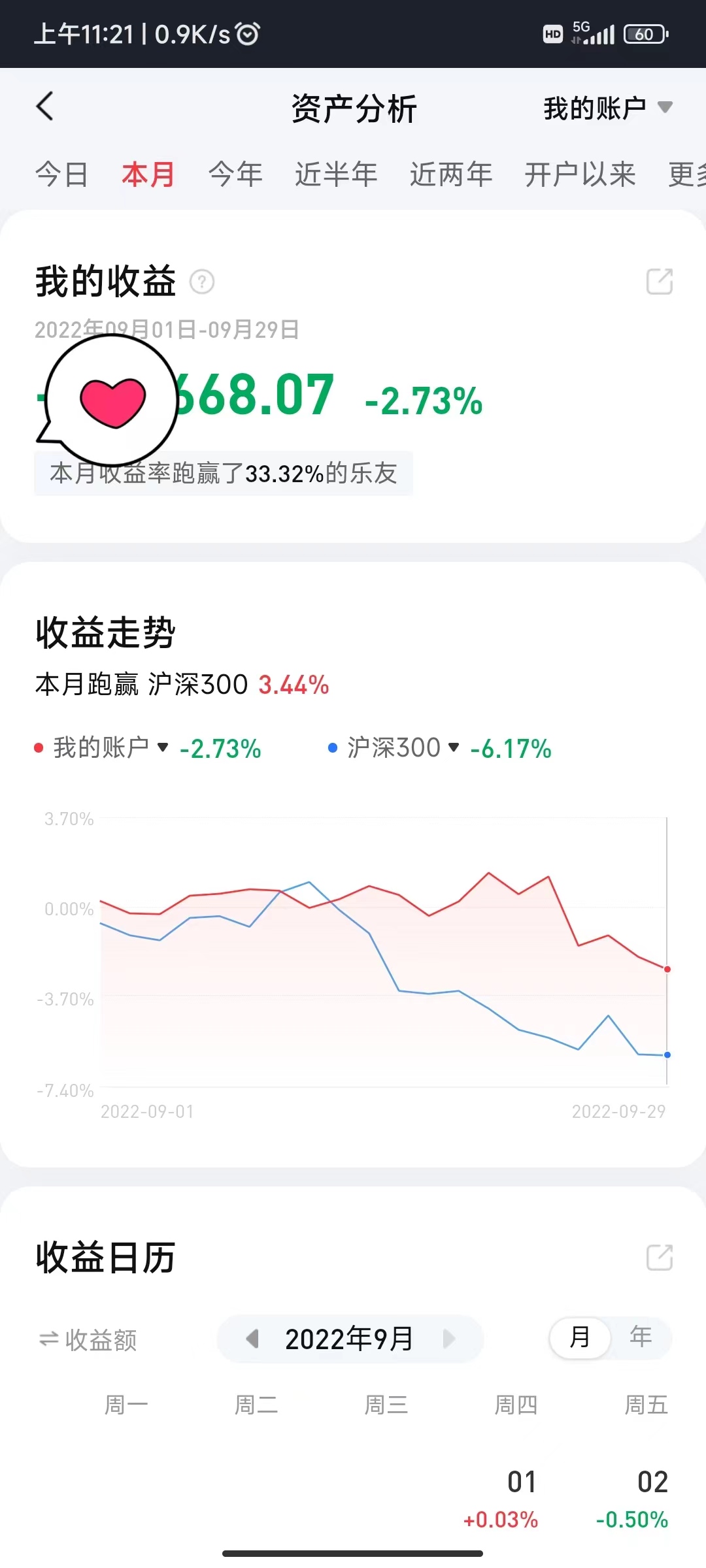 我自己统计的收益率图: