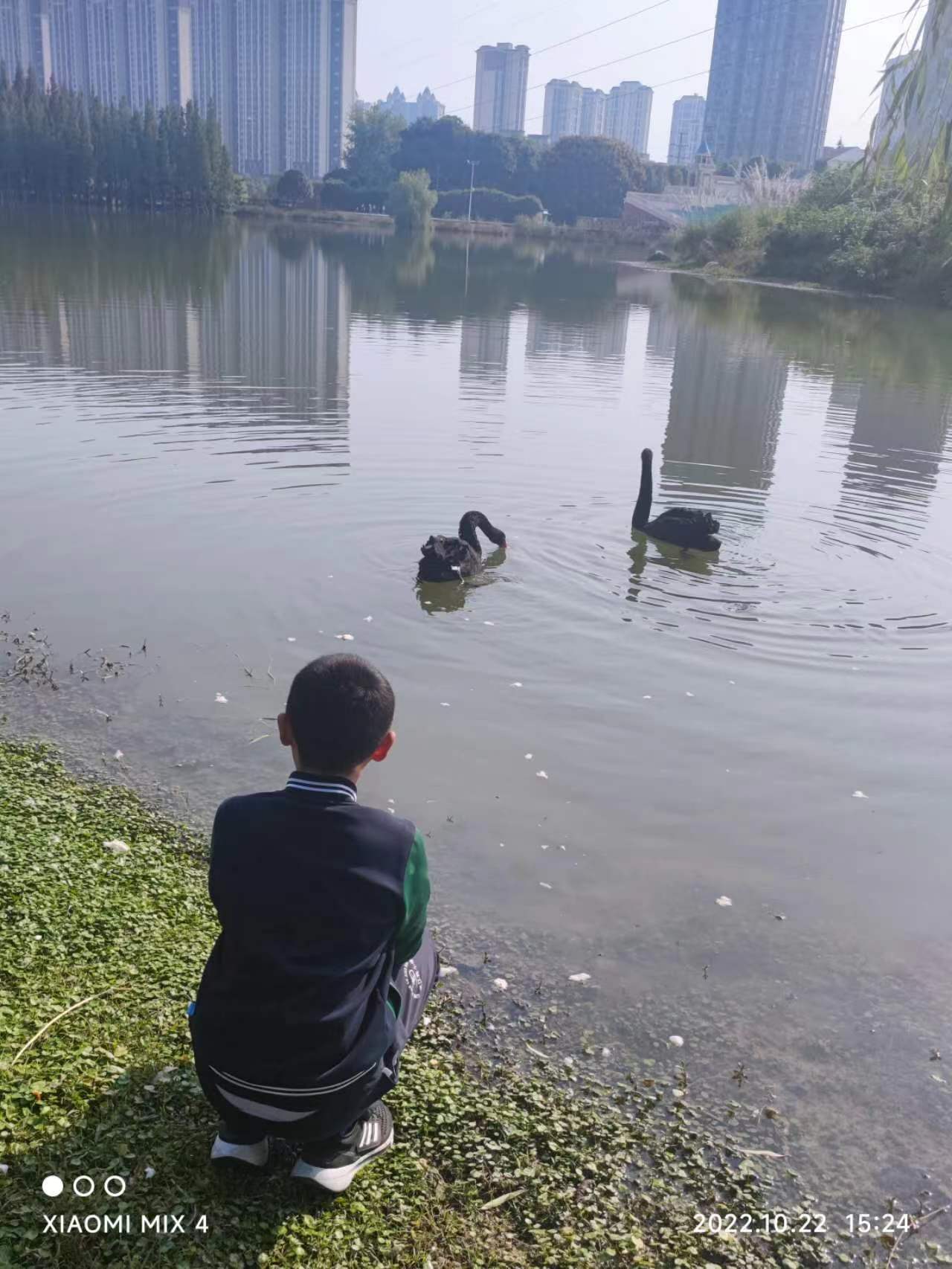 来张上周末在凤凰湖拍的照片吧,两只黑天鹅吃完孔曼且硕手中的面包后,红掌拨清波潇洒地离开了。我手里的这两年攒下的面包剩得也不多,股市上的黑天鹅们也该游走了吧……