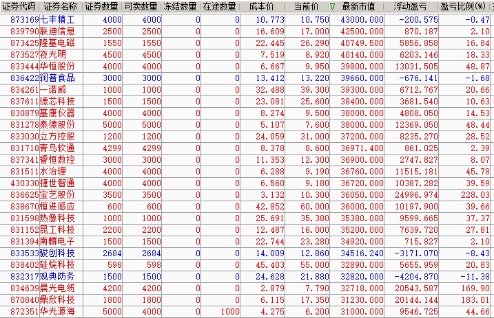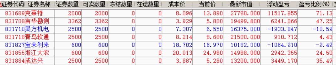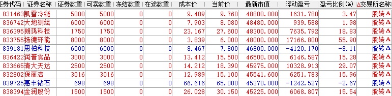 三板虽然涨幅不大但相对更为稳健,分散加仓了十几支,大部分买入之后都高走了一些。