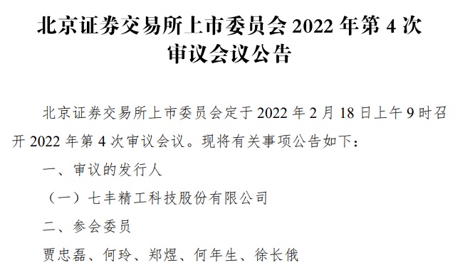 下午周小结里刚说该审议我的持仓了,晚上就看见北交所公告,七丰精工下周上会。