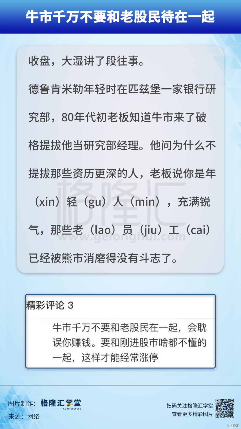 我记得谁说过,如果刚开始就赚钱,后来可能会形成路径依赖,盈亏同源,迟早会碰到挫折。一轮完整的牛熊市之中,肯定有碰到挫折的时候,就看如果应对了。