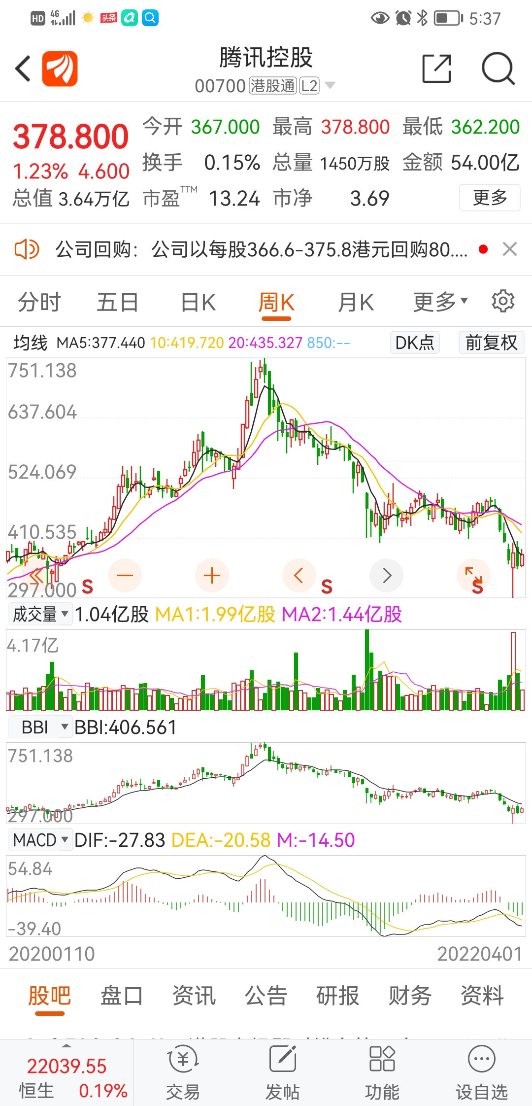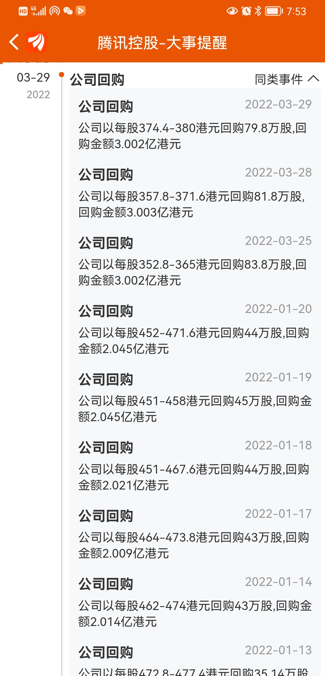 小企鹅一直在回购,开始时每天2亿港元,现在每天3亿港元,真不错,继续努力。