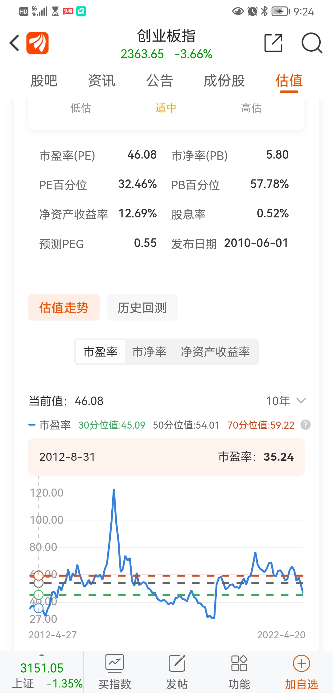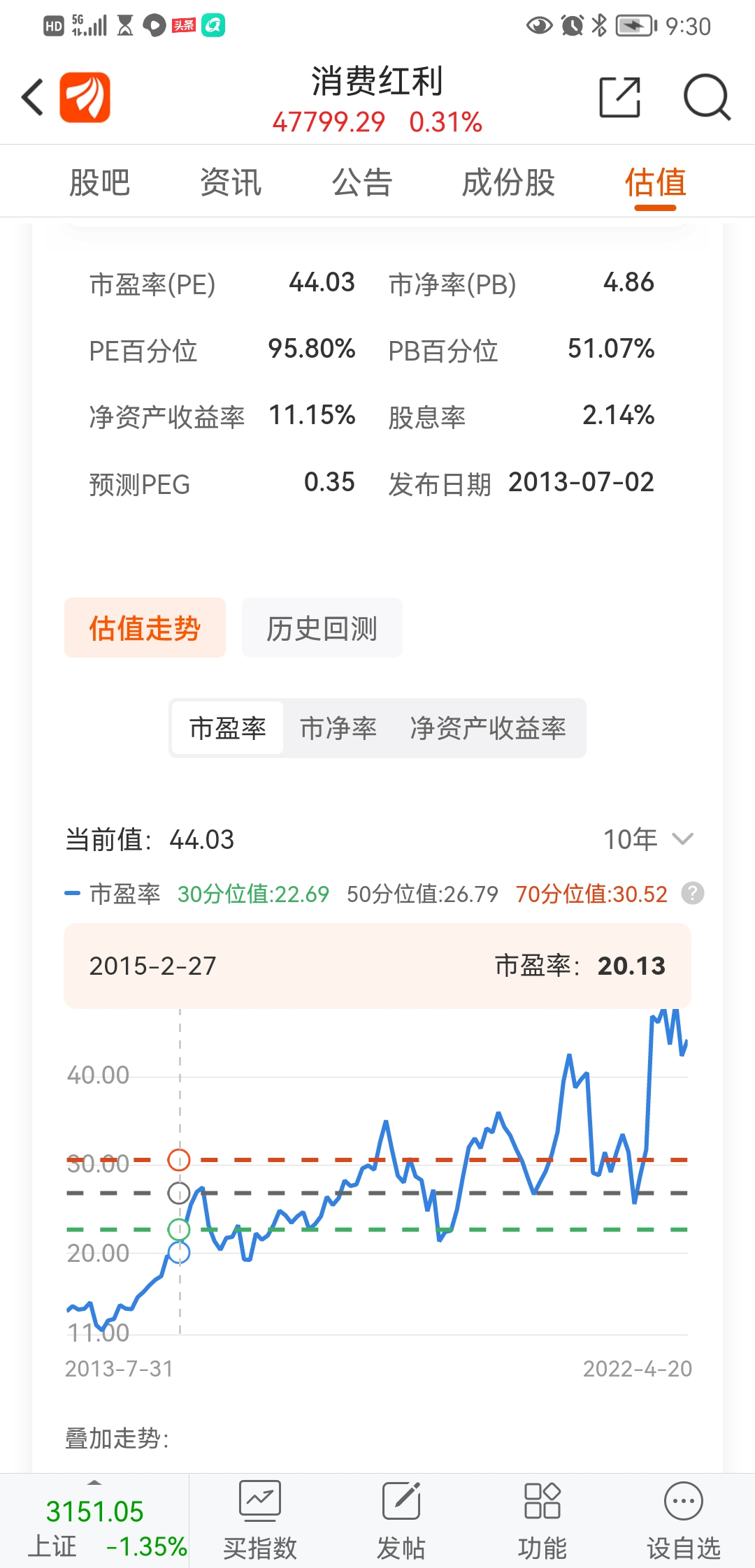 啥时候算便宜才开始考虑买,至少PE到30,10年分位值5%以下吧。