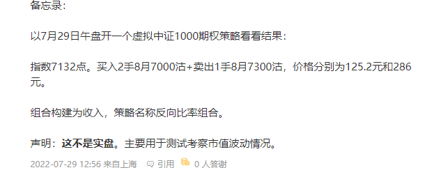 B:我昨天也拿出自己在1000期权上的第一个模拟单给予印证。如果8月4日平仓,当时可以是获利的(空头策略),因为认同贴水看跌逻辑,最后结果只能“不赔”。