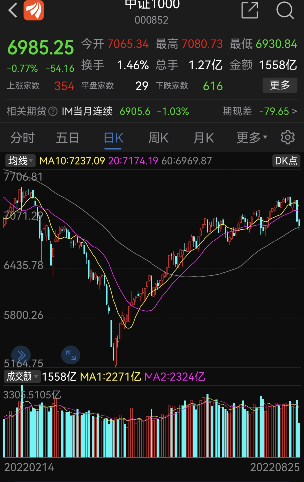 1:IM2208实际走势,7月22日6956点,8月18日收盘7358点。