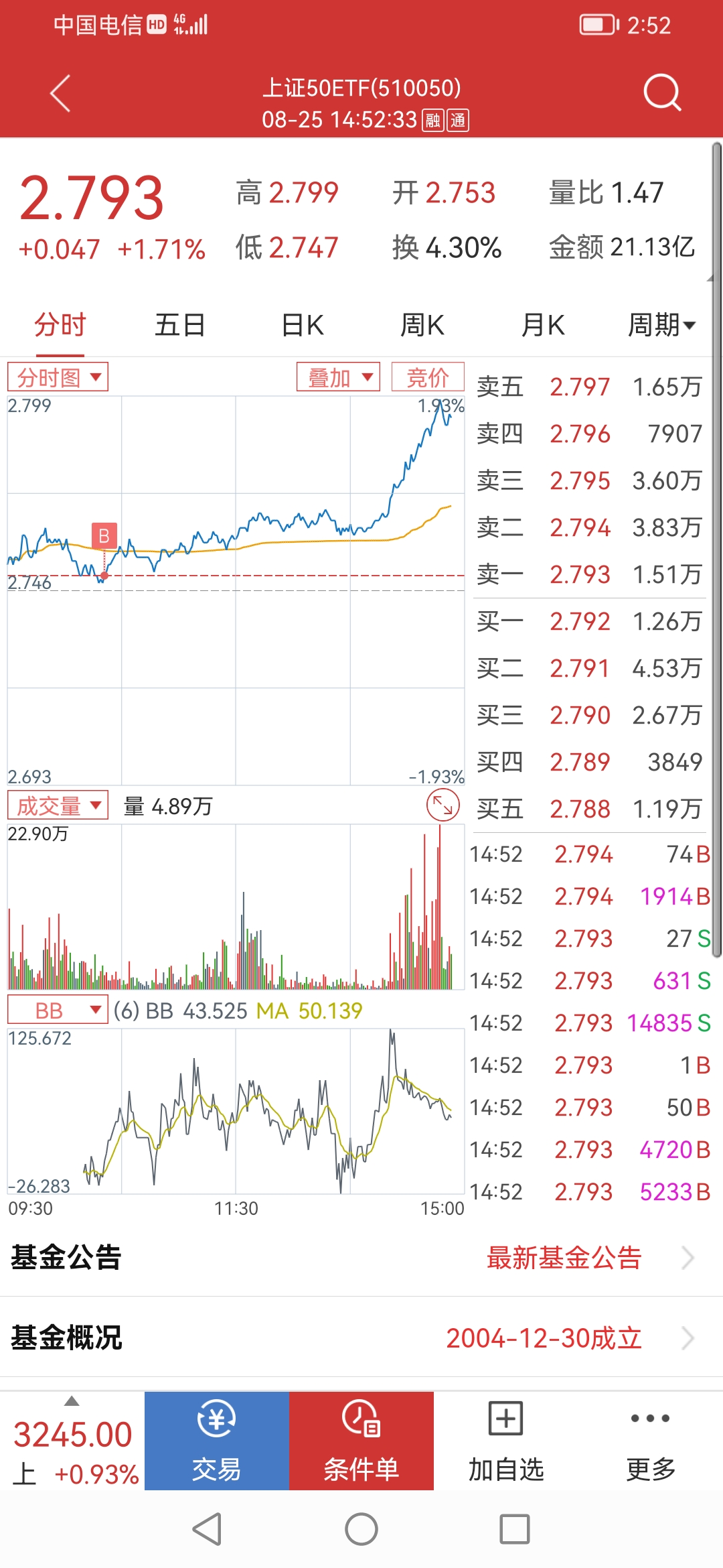跟我预测的一样,预计8月底9月初,上证指数(上证50)会有一波行情仰望星空,掐指一算,今年最后四个月会吃肉https://www.jisilu.cn/question/463547好吧,9月初一定清仓50.
