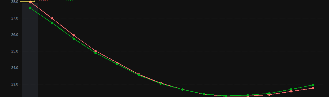 贴一个mo的波动率曲线,包括io多数时候put都比call贵,如果不择时的长持虚值卖call,恐怕会被gamma顶的很难受,印象中天书主公有长持虚值买call彩票不讨论虚值,就单单看沽比购贵这一点。这应该说明买沽的多一些,符合做多个股或者期指,用买沽来保护强于卖购“备兑”。原因也简单。保险策略对上行收益曲线是开放的,而备兑曲线是受限的。因此买沽对冲的就是大资金手法,卖购套保的多属于小户所为(类似小富即安型)。