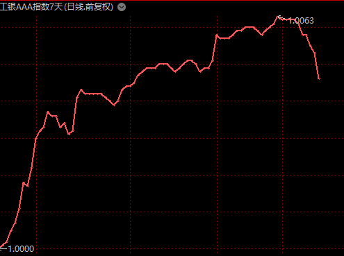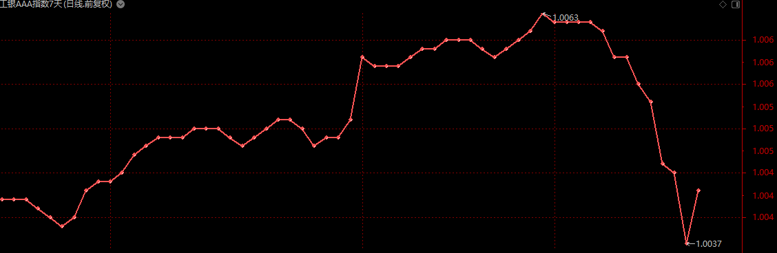 这是我自己持有的理财产品最近的净值走势!这个7天持有期同业存单,半年前非常热门难以买到,现在波动居然也可以这样大!