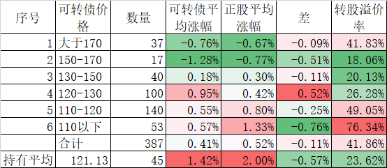 今天可转债行情不错,主要也是因为正股的表现比较好。但今天正股是低价可转债表现好,高价可转债表现不好。我自己持有的可转债今天表现出色,评价上涨了1.42%,几个实盘合计上涨了1.47%,之所以超过平均值是因为英联转债部分账户卖在了142元的高价,到收盘跌到138元了。
