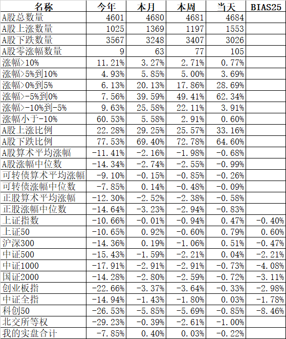 今天个股涨少跌多,64.60%的个股下跌,可转债的表现已经比个股好多了。今天我持仓的岩土转债的正股涨停,可转债截止到收盘也大涨了12.70%,我卖出去的时候虽然没那么高,但也涨了10.82%